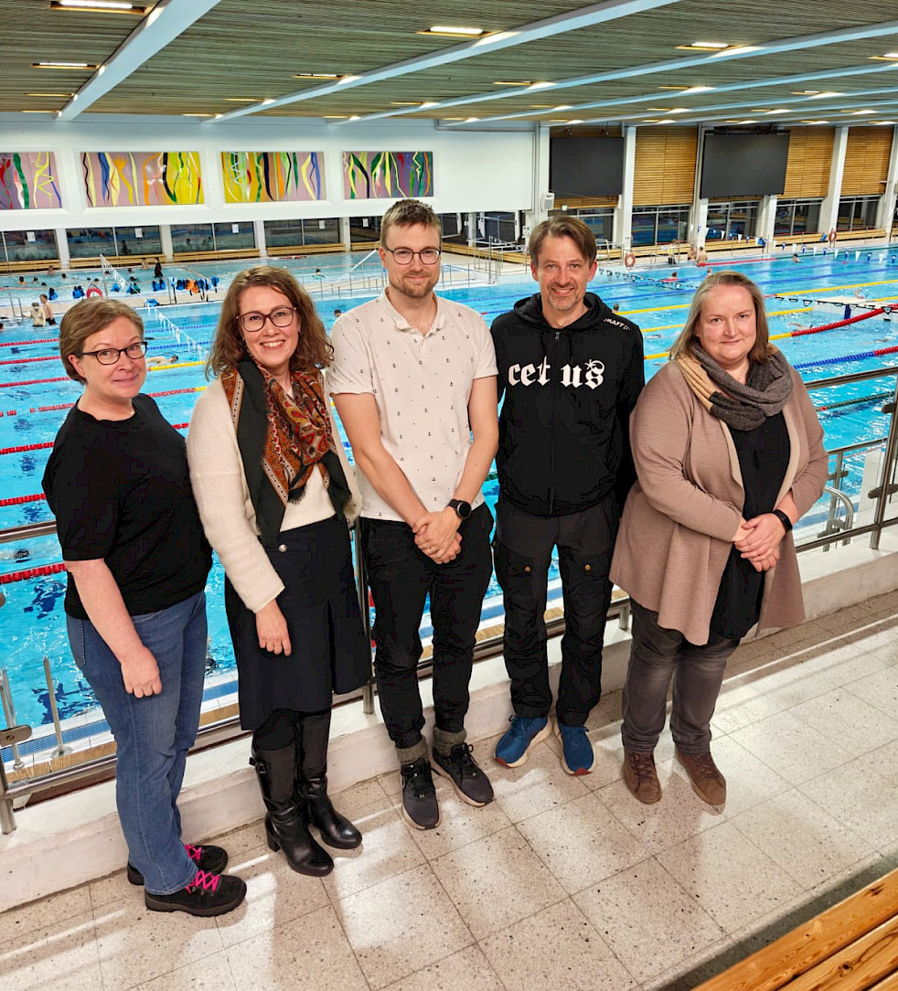 Kuvassa vasemmalta Anu Puuperä Enroth, Jenni Pirinen, Tuomas Kiviluoma, Kai Salminen (pj) ja Marjokaisa Ryhänen.